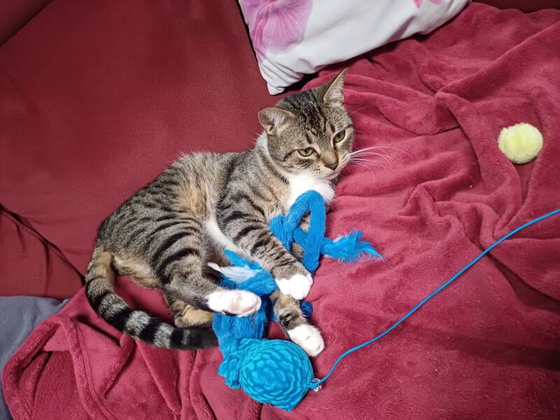Sie genießt die vielen gemeinsamen Schmuse- und Spieleinheiten mit ihren neuen Dosenöffnern.
